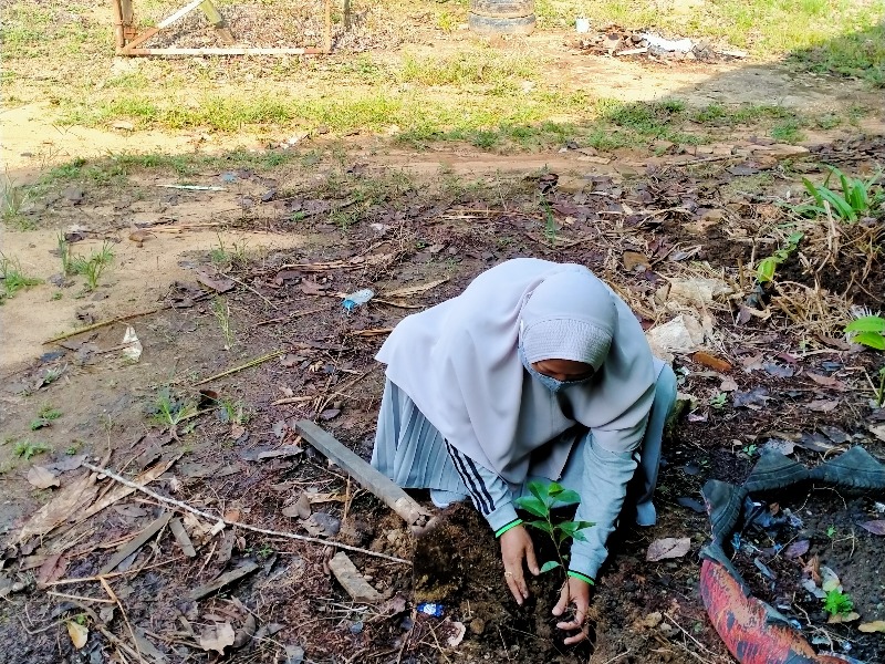Kegiatan penanaman bibit pohon dSMA Negeri 1 Kelua dalam rangka memenuhi persyaratan kenaikan pangkat